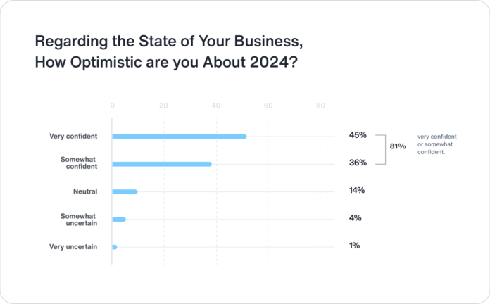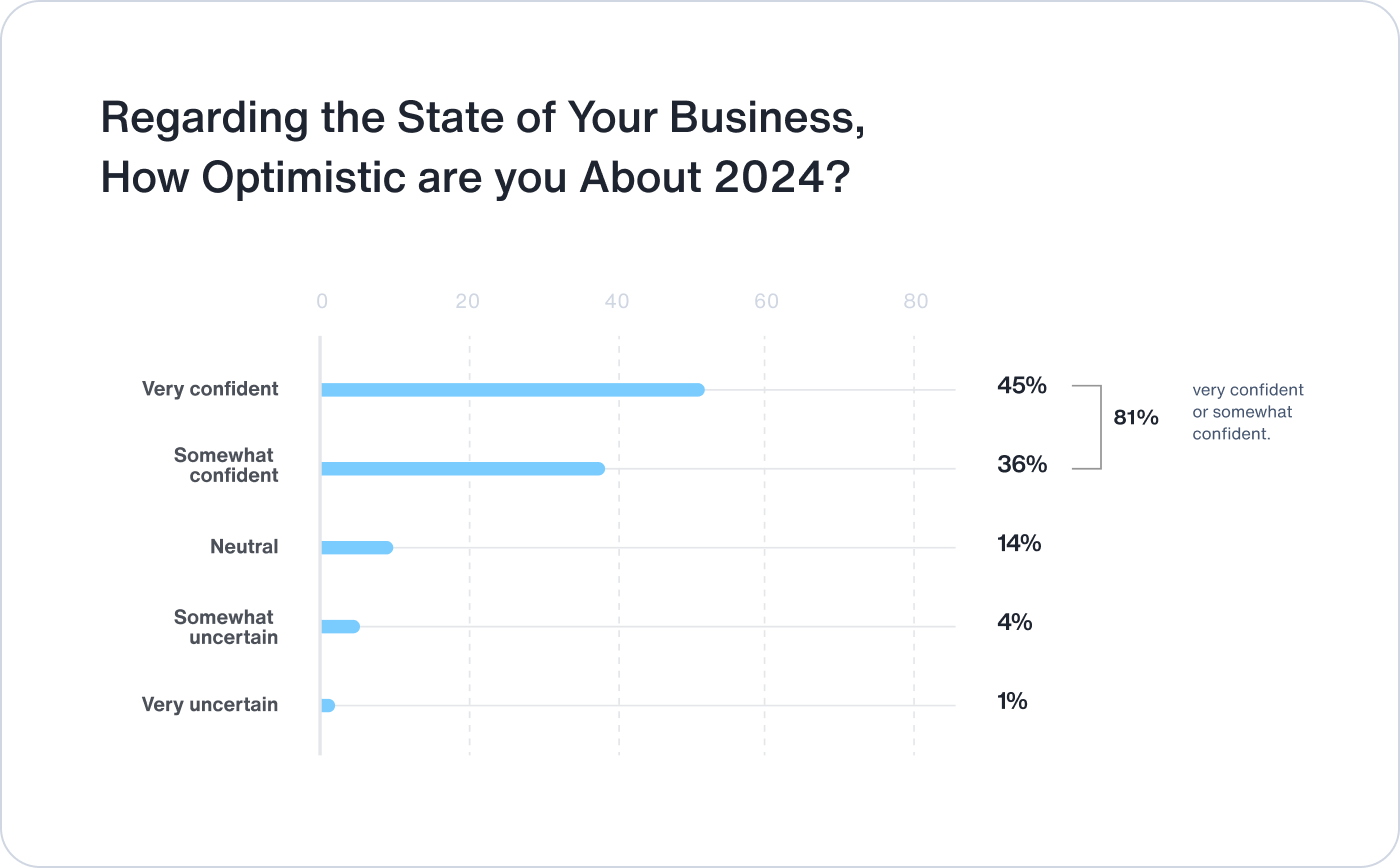According to the data, optimism prevails. Eighty-one percent of property managers are confident about the state of their business in 2024, while 77% expect revenue to increase.