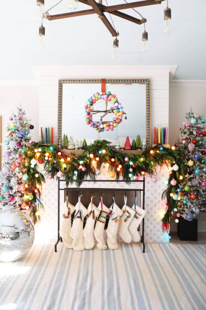 These lights really give that colorful, vintage vibe without the fire hazard. I’m all about some incandescant lights these days, but these guys perform so well and hold up beautifully. This is a glimpse of our mantel from last year, and I’m sure I’ll be pulling it together shortly. But in the meantime… a fun idea for all things color!