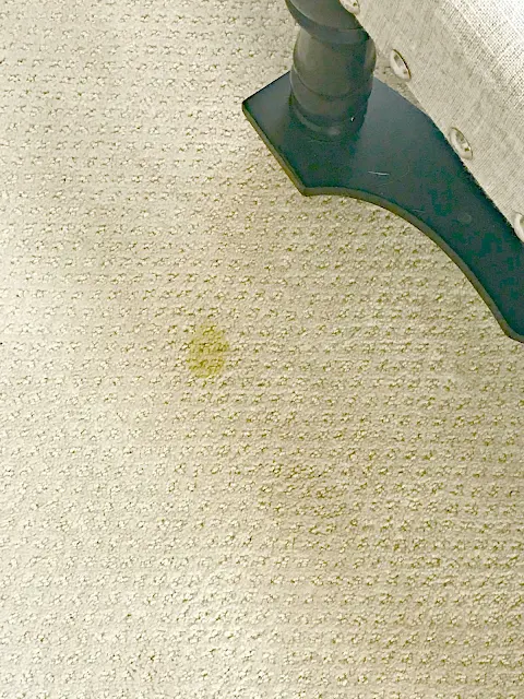 As you can see, it immediately starts working on the stain. (The carpet color looks different, I know — these were taken at different times and with lights on and off.)