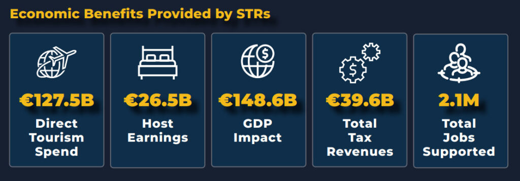 • France: STRs contributed €36.6 billion to the country’s GDP, with guests often staying in smaller towns that lack traditional accommodation options.
