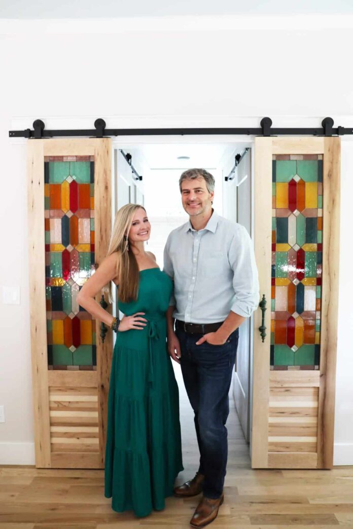 This is one of my own personal favorites as well, in the pool room. When we added our second addition onto our home, we knew that we needed a door to allow plenty of light and flow, but we also wanted it to give us a little privacy when we wanted to divide the space. From using this room as my studio with painting and stained glass, to movie nights with the family or entertaining at night… the door is perfect and I’m obsessed.