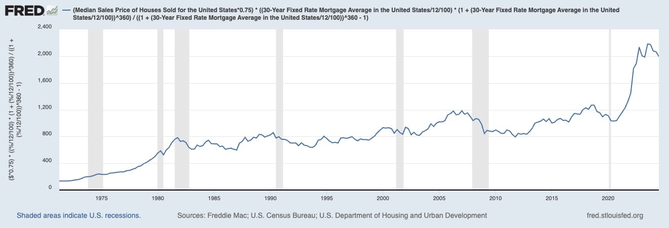 Average monthly mortgage payment over time (assuming a 25% down payment)