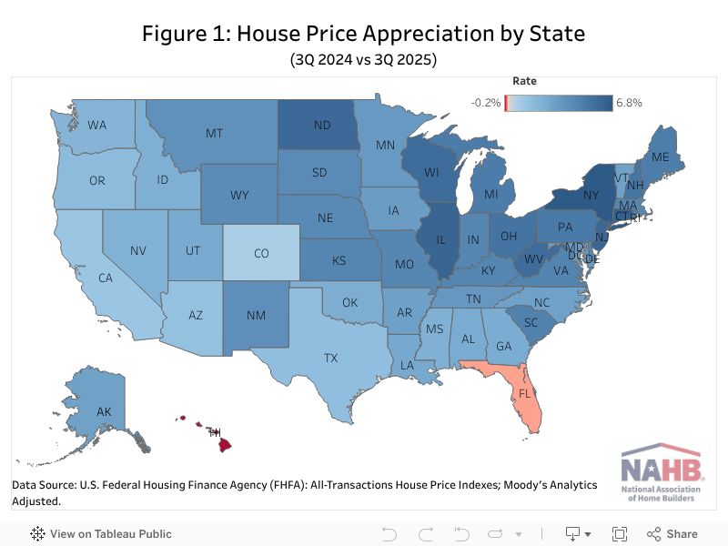 House prices continued to rise in the third quarter of 2025, though the pace of growth slowed as elevated mortgage rates, affordability challenges, and persistent economic uncertainty weighed on consumer demand. After several years of rapid growth, Hawaii and 38 metro areas saw house price declines this quarter, highlighting significant regional variations in market conditions.