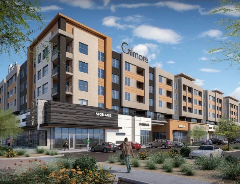 The Gilmore will include roughly 200,000 square feet of grocery, retail and restaurant space, a hotel and 300 luxury apartment homes just off Loop 202 at the northwest corner of Val Vista Drive and Germann Road.