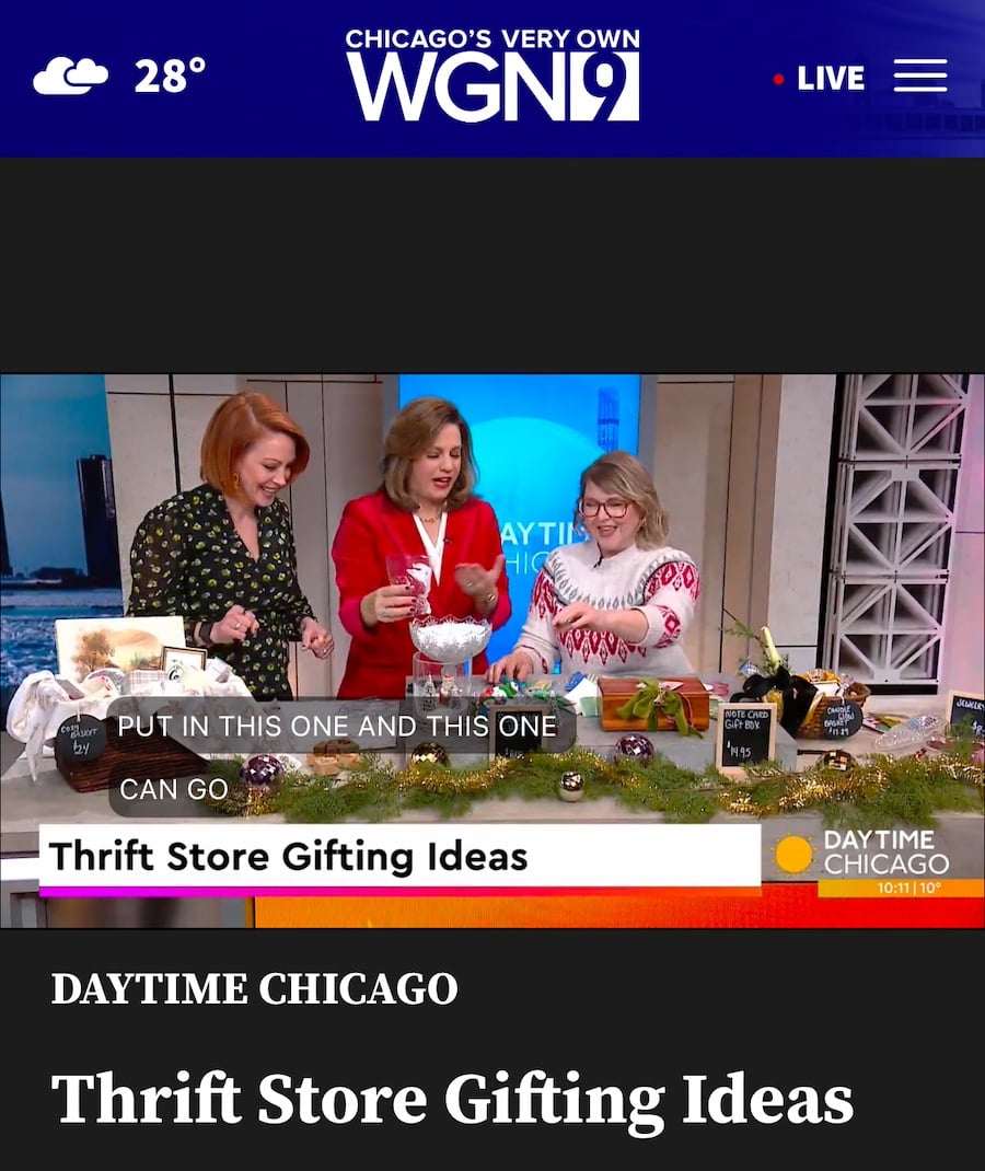 Gift giving should be about the gift and the receiver, not the cost. Doing what I call “Second Chance” gifting is a great way to not only save in the pocketbook, but give in a more sustainable and thoughtful way. Thrift Gifting not about just buying a bunch of used stuff either. It’s about upcycling, repurposing and greener gifting. I recently shared on a segment on WGN Daytime Chicago, about thrift gifting and how it has gained popularity. Here are some fun tips for Thrift Store Gifting and ideas to put baskets together.