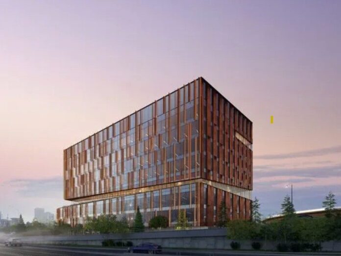 The 330,300-square-foot life science building within The Spur, a biotech development by IQHQ. Image courtesy of McCarthy Building Cos. Inc.