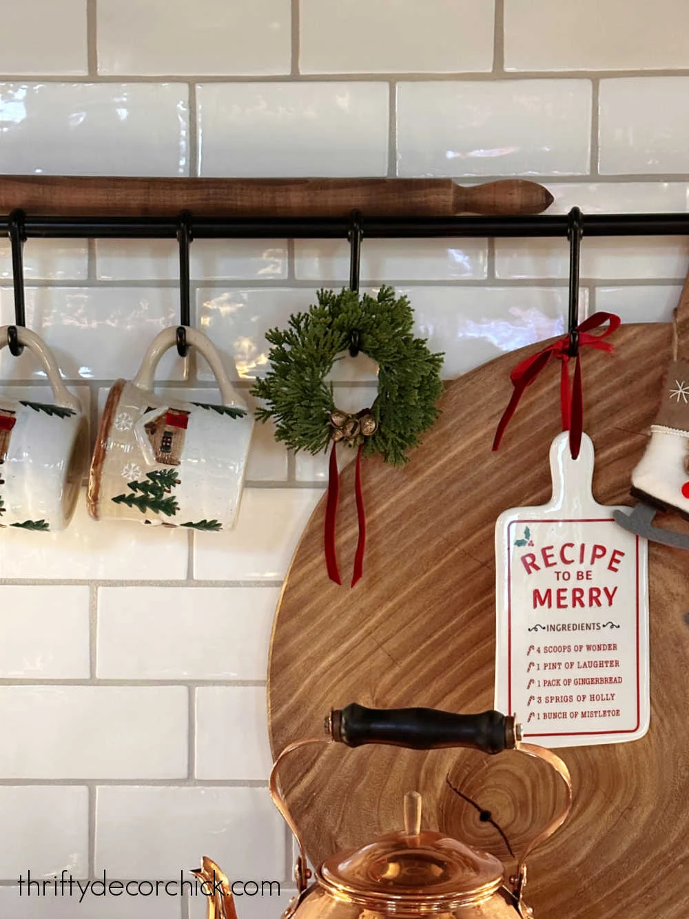 Hanging wreaths from the back of a chair is an easy, festive touch! I’ve