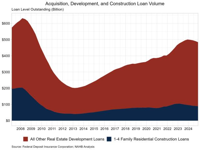 Excluding 1-4 family residential construction loans, the level of all other outstanding real estate construction loans totaled $394.6 billion and was down 2.2% from the previous year This is also down from a peak in the second quarter of 2024 of $404.2 billion.