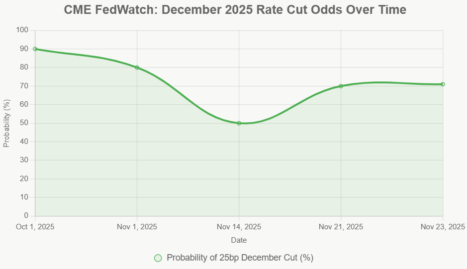 Just recently, on November 21st, New York Fed President John Williams made some remarks that really got people talking. He suggested that the Fed’s current policies are still “modestly restrictive” and that there’s “room for further adjustment.” Basically, he was hinting that a rate cut was on the table. After his comments, the odds of a December cut jumped from about 50% to over 70% in just a few hours! It’s amazing how much impact a few carefully chosen words can have.