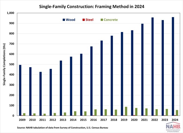 On a count basis, approximately 959,000 wood-framed homes were completed in 2024. This was a 3% increase compared to the 2023 total. This growth also marked a rebound in market share, with wood-framed market share rising from 93% in 2023 to 94% in 2024. Steel-framed homes, while still uncommon, experienced notable growth. About 4,000 steel-framed homes were completed in 2024, representing a 33% increase from the previous year.
